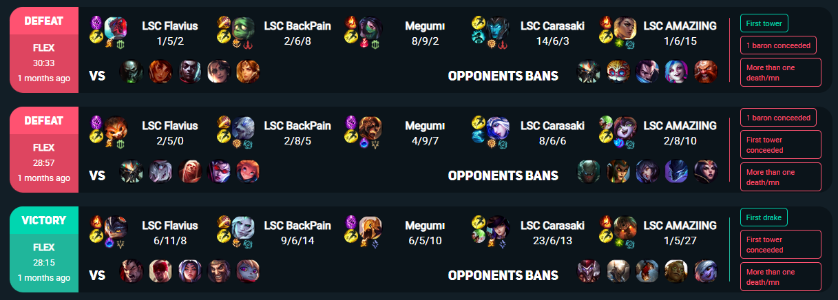 Discover the statistics of your team games in League of Legends. Whether you're playing in a duo, trio, or with up to 8 people, analyze your performances as well as those of your opponents to improve your collective gameplay and enhance your draft !